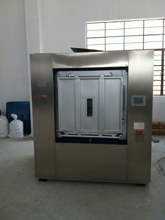 首先,從設(shè)備上采取的衛(wèi)生隔離式洗衣機(jī)。背靠背的兩道機(jī)門,使污染布草的裝載和潔凈布草的卸載從不同的兩個(gè)門進(jìn)出,從源頭上避免了交叉感染。